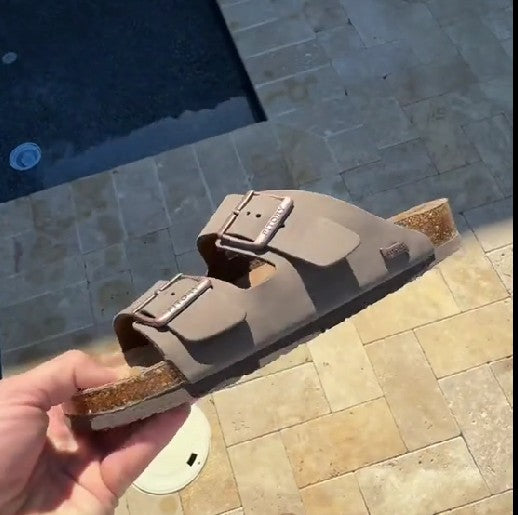 Causal Mocha Strappy Sandals With Buckle Details