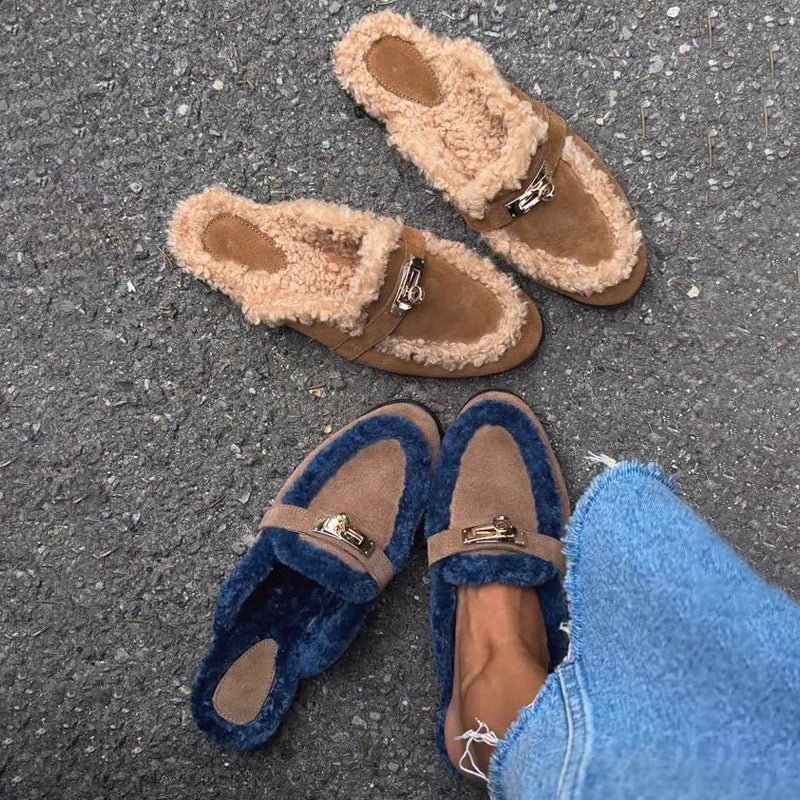 Color Block Furry Slippers