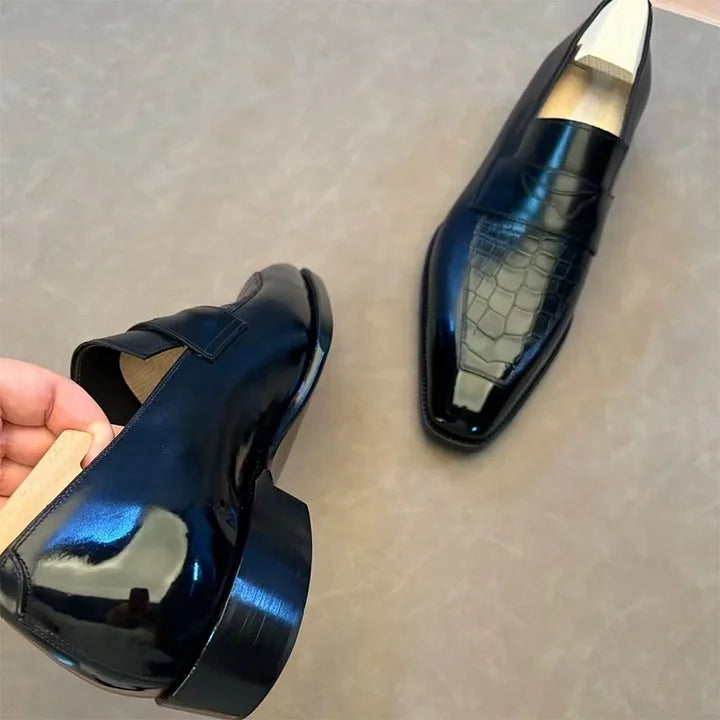 Crocodile And Cowhide Leather Dress Loafers