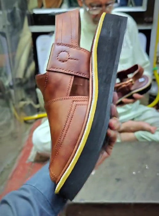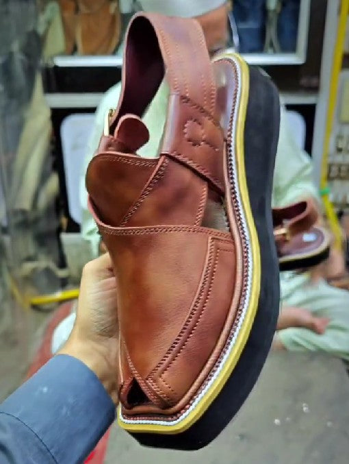 Handmade Men's Brown Texture Leather Square Toe Sandals