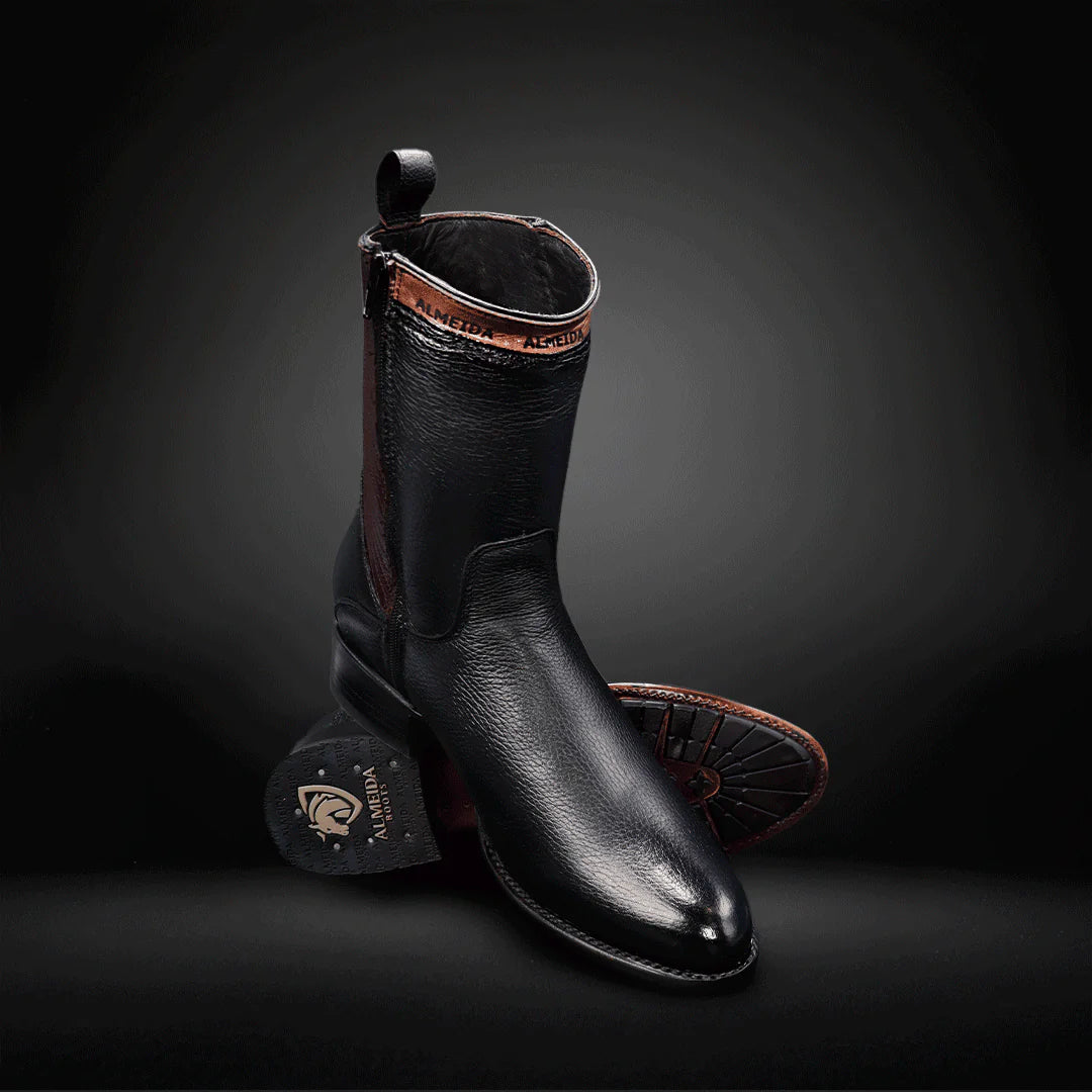 Round-toe Lychee Leather Cowboy Boots